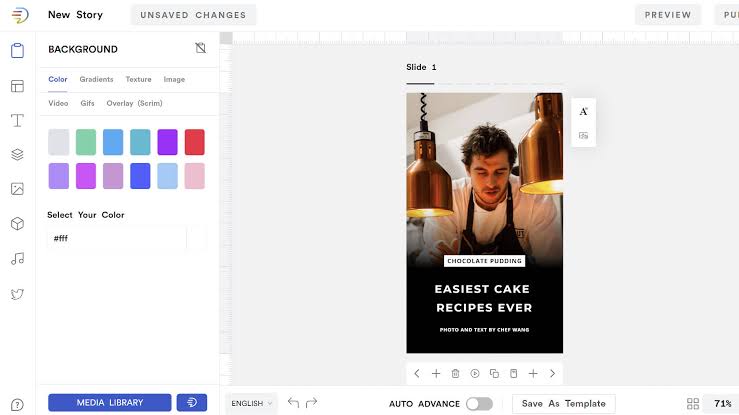 Here you get all kinds of tools like Background, Template, Text, Layers, Media Library in the serial, which helps a lot in making a great story for the blog, they have been told in short above.
